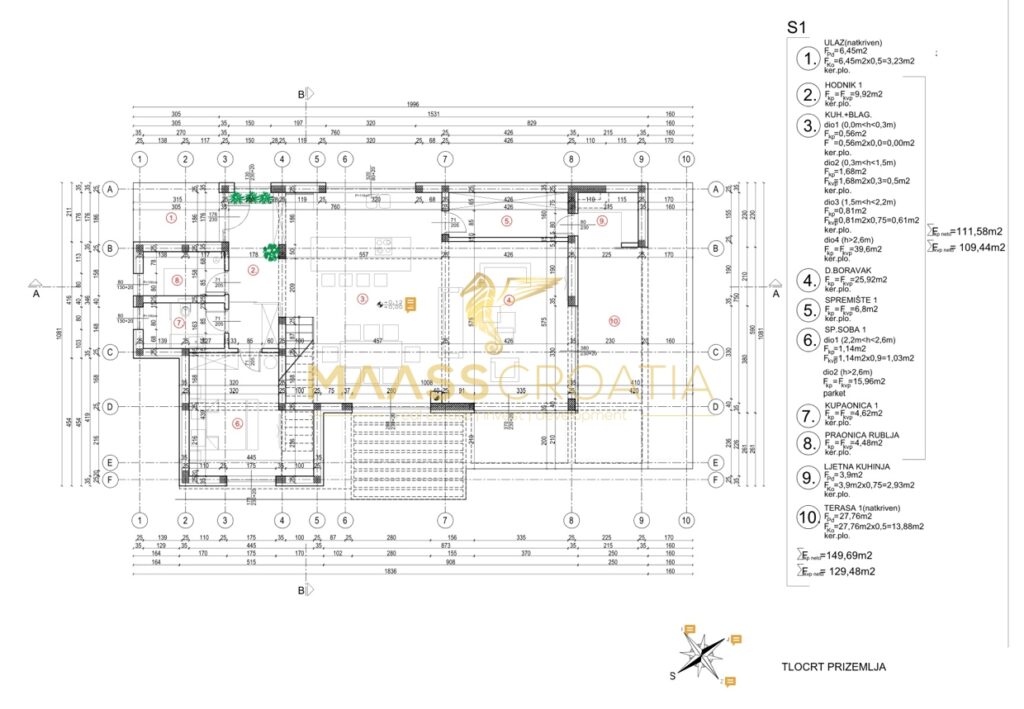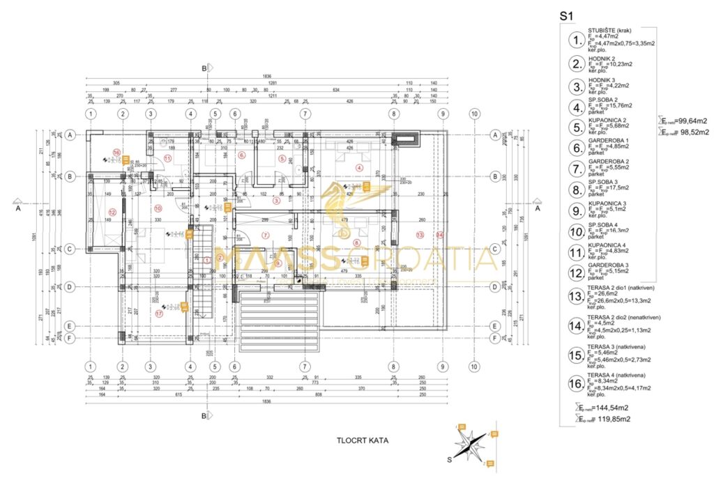 Трехэтажная вилла имеет жилую площадь 225,21 м² и предлагает много пространства для комфортной жизни.