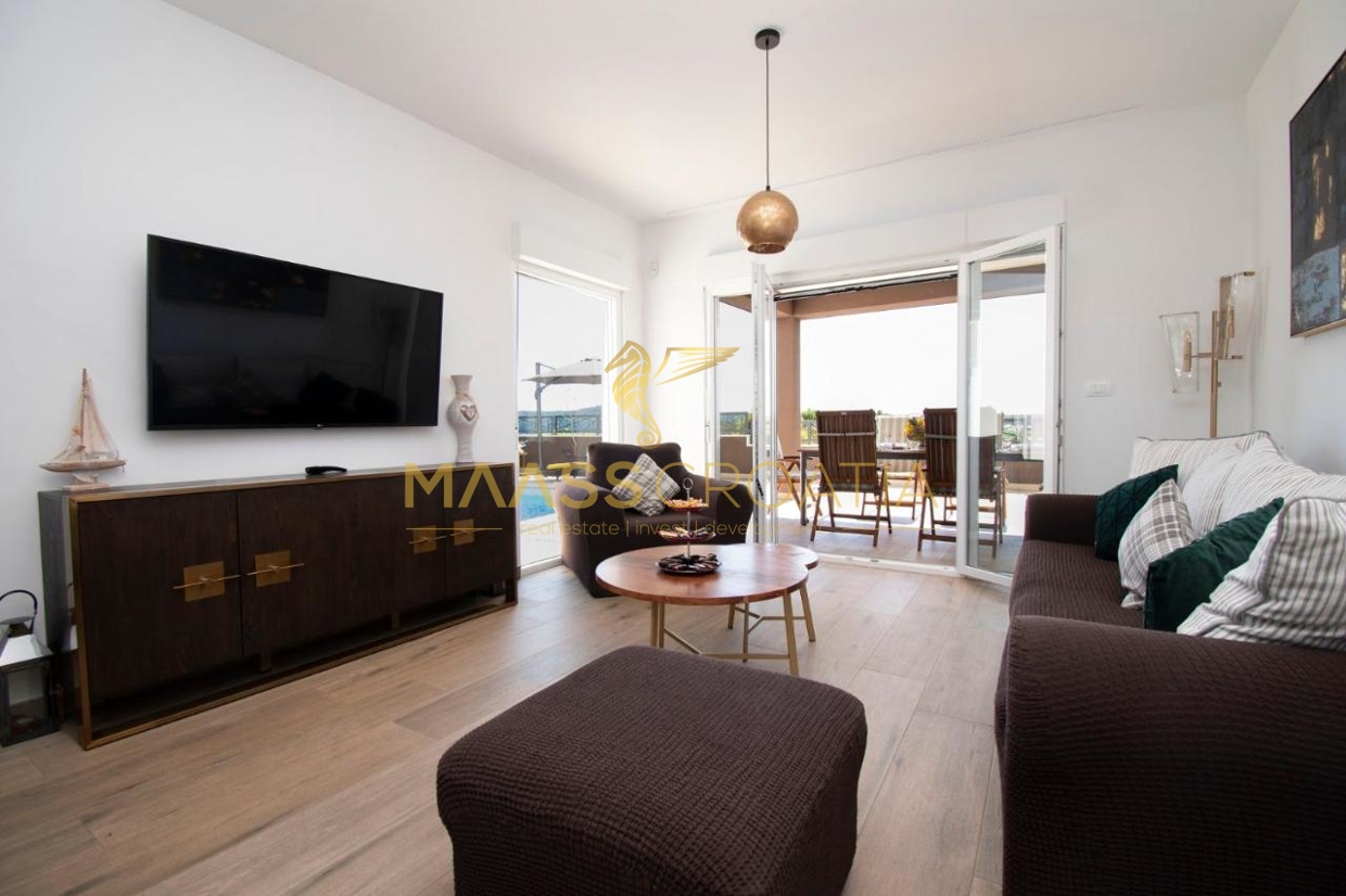 Продается роскошный отдельно стоящий дом площадью 200 м² с прекрасным видом на море, расположенный в Медулине, всего в 150 метрах от моря и пляжа.