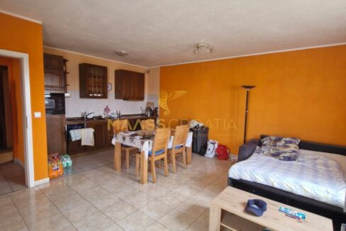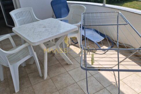 Она состоит из большой гостиной с обеденной зоной и кухней открытого плана, спальни, прихожей, ванной комнаты и просторной террасы.