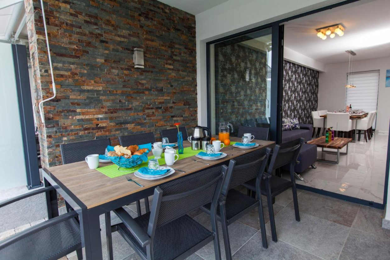 Большой бассейн идеально расположен на террасе и увенчан тропическими пальмами, которые заставят вас почувствовать, что вы живете в своей собственной тропической фантазии в самом сердце региона Кварнер!