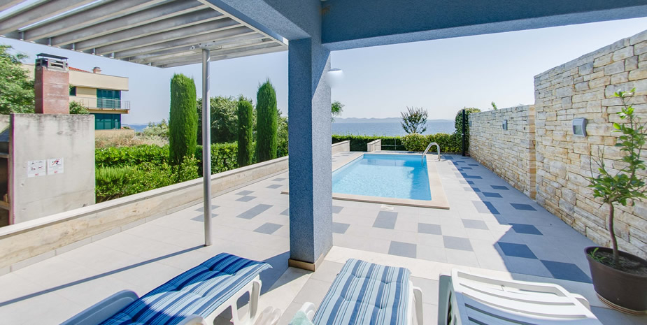 Современная трехэтажная вилла с бассейном и видом на море, с высококачественной мебелью
