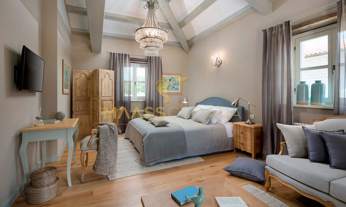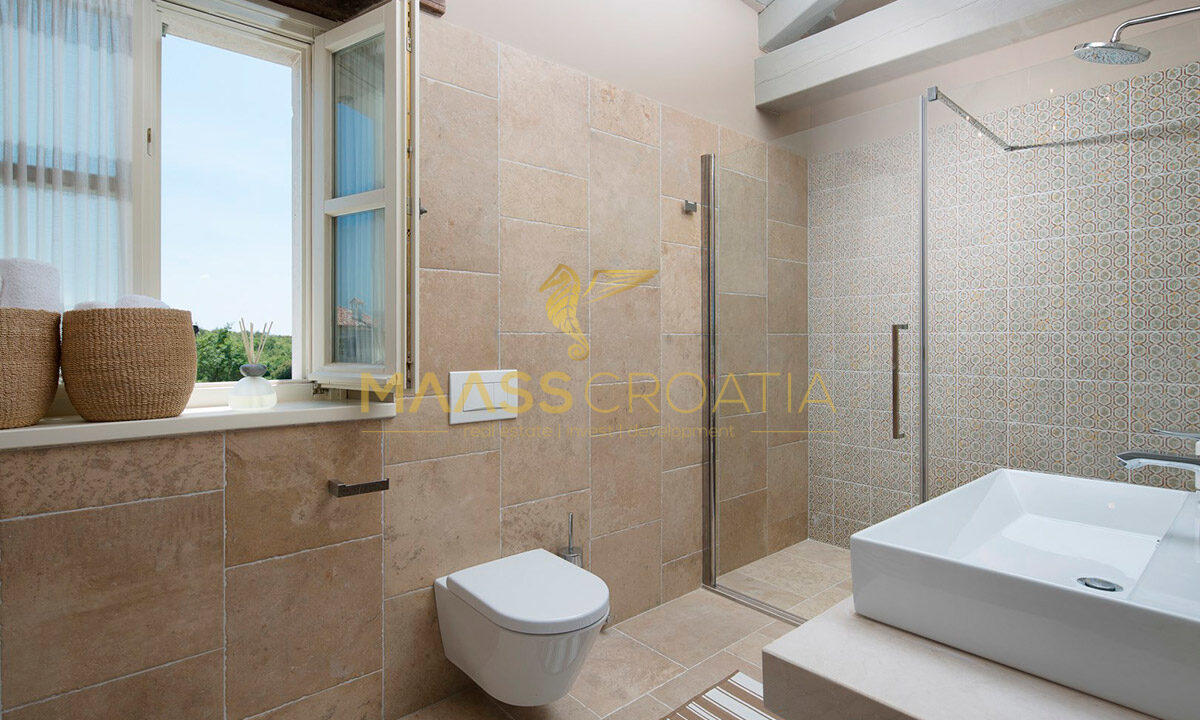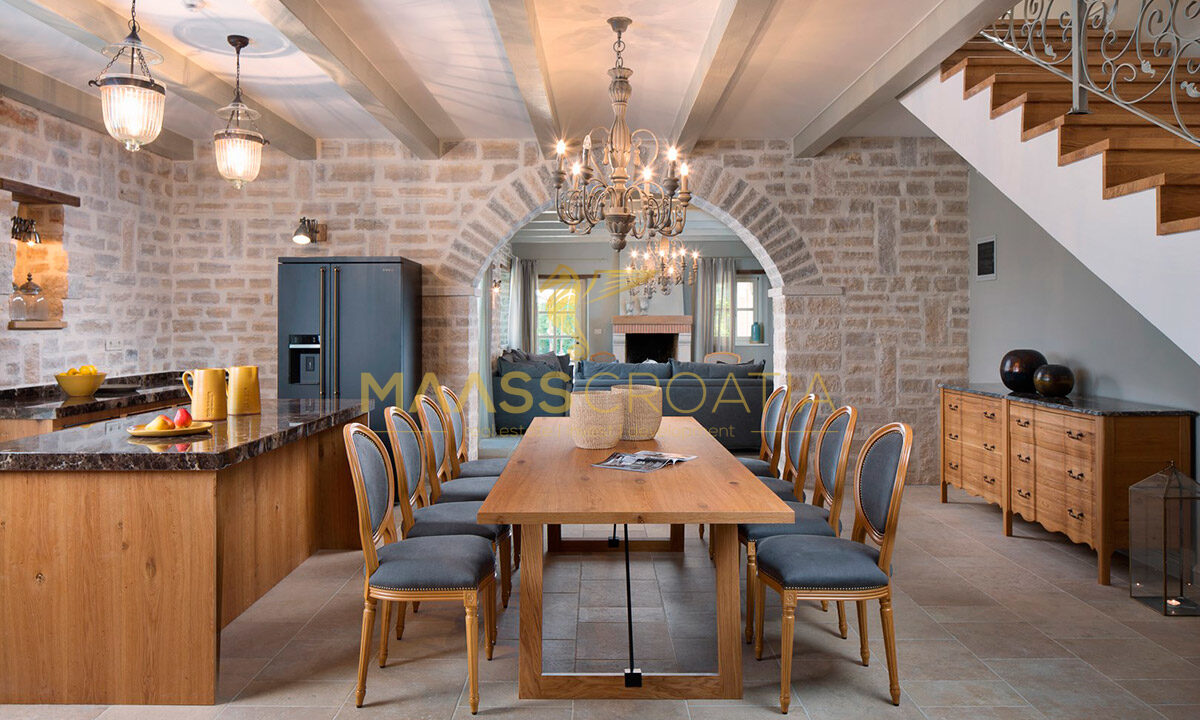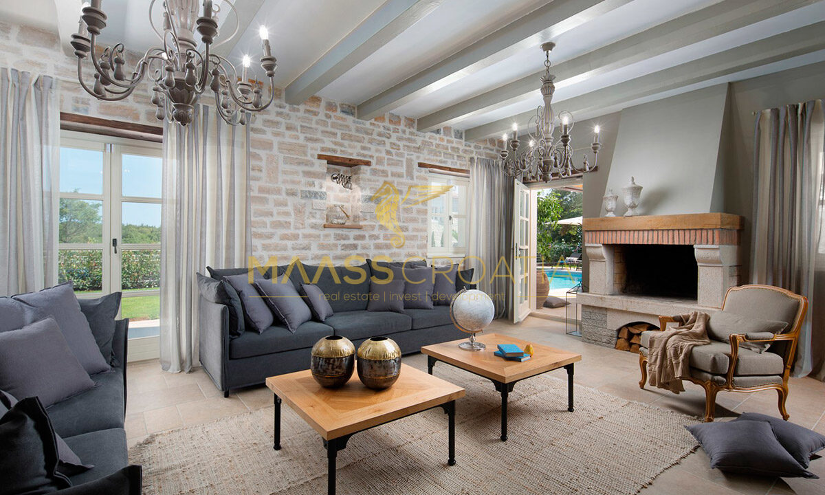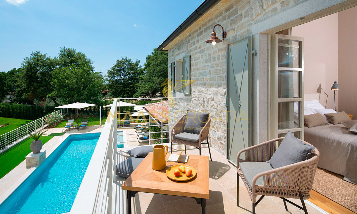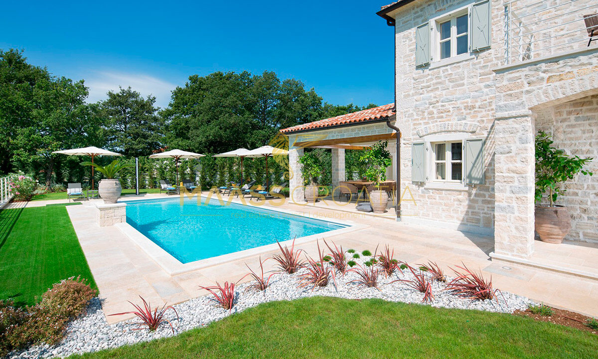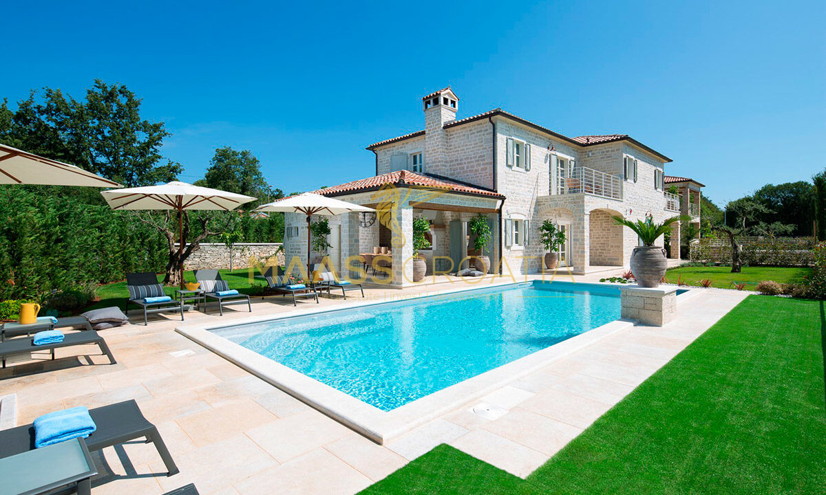 Продается роскошная вилла с бассейном и жилой площадью 359 м2, садом площадью 880 м, в 15 км от Пореча и примерно в 16 км от моря, с двумя полностью кондиционированными этажами, рассчитанная на 8 человек.