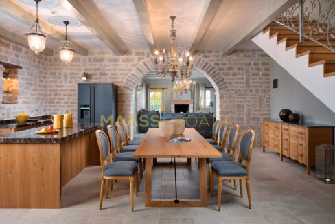 На первом этаже дома находится просторная гостиная с камином и SAT-TV и выходом на просторную крытую террасу с обеденным столом, камином для барбекю и зоной отдыха, большая полностью оборудованная кухня с обеденной зоной, спальня с двуспальной кроватью, последний туалет и выход на террасу, отдельный туалет в гостиной зоне и душ/туалет на террасе.