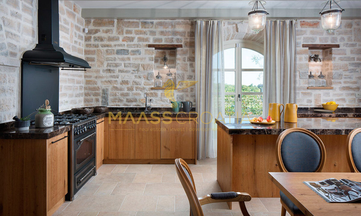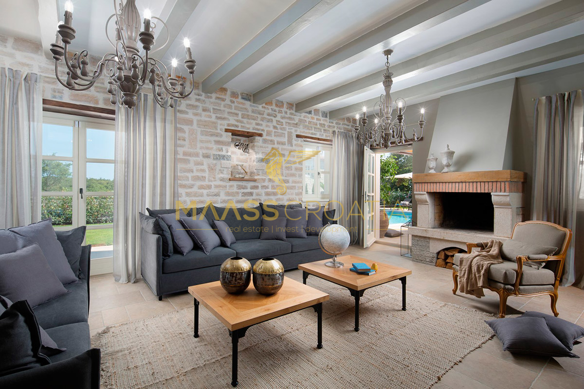 Продается роскошная вилла с бассейном и жилой площадью 359 м2, садом площадью 880 м, в 15 км от Пореча и примерно в 16 км от моря, с двумя полностью кондиционированными этажами, рассчитанная на 8 человек.