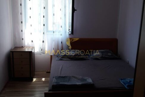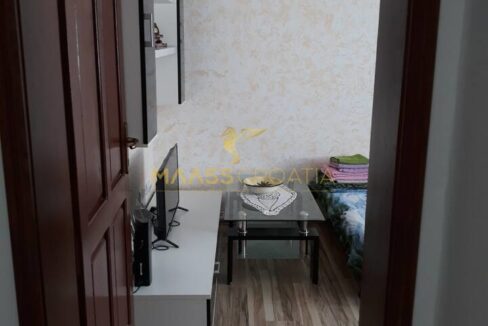 Площадь квартиры составляет 50 м² и состоит из прихожей, ванной комнаты со стиральной машиной и душевой кабиной, спальни с двуспальной кроватью и гостиной с раскладным диваном, кухней и обеденной зоной.