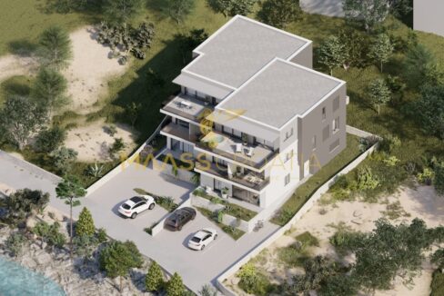 Квартира состоит из гостиной с кухней и столовой, кладовой, туалета, 3 прихожих, двух спален и ванной комнаты. К квартире прилегает сад площадью 149,37 м2 и парковочное место.