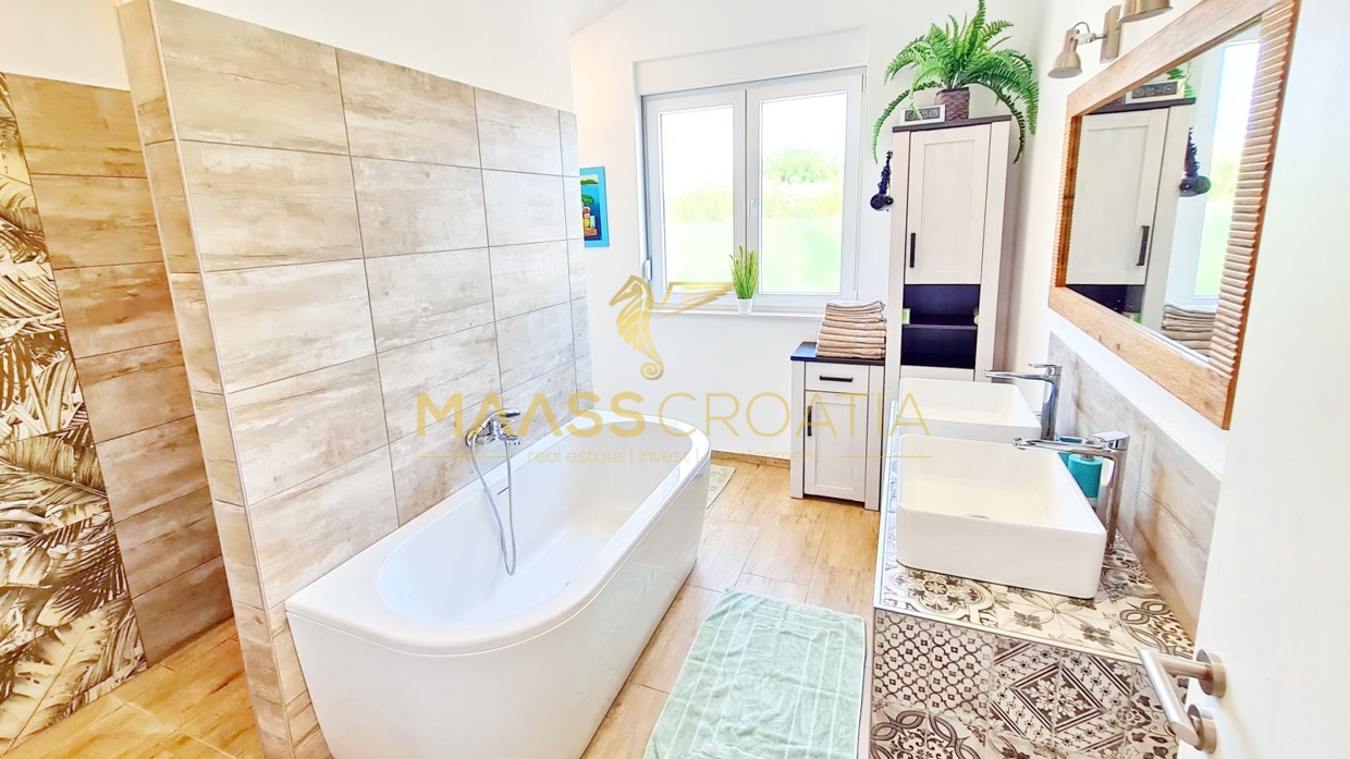Полностью меблированный, высококачественный двухэтажный дом, построенный в 2022 году, с жилой площадью 182,85 м², выставлен на продажу.