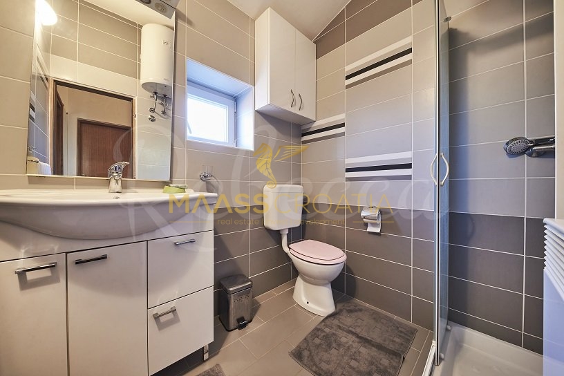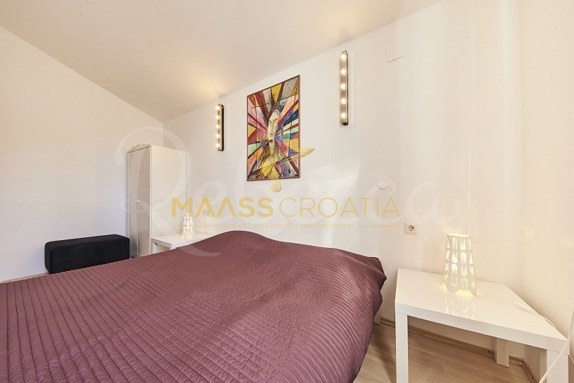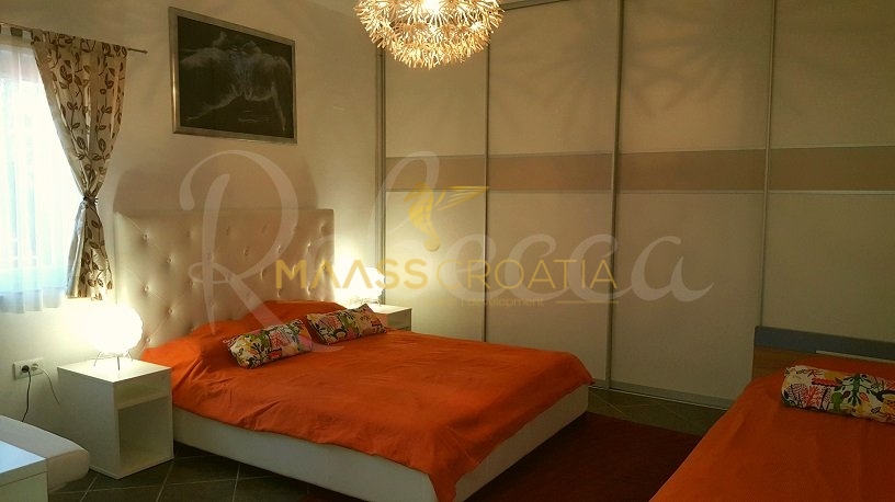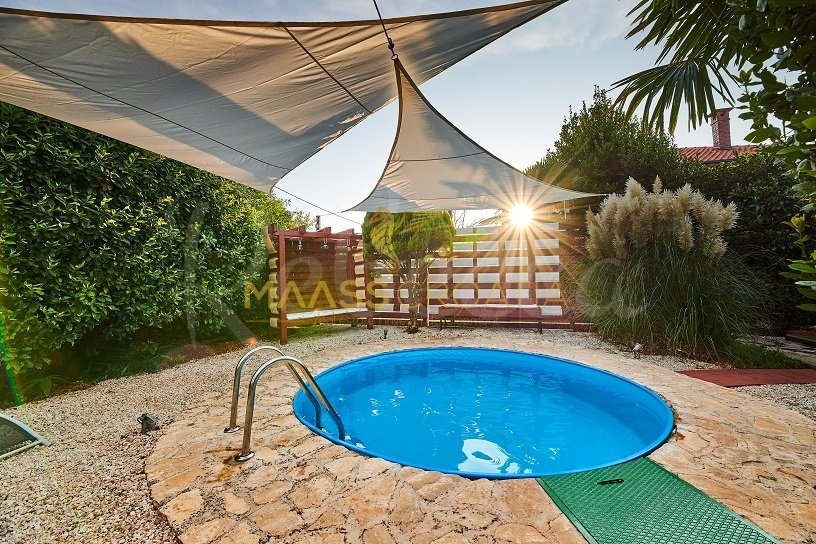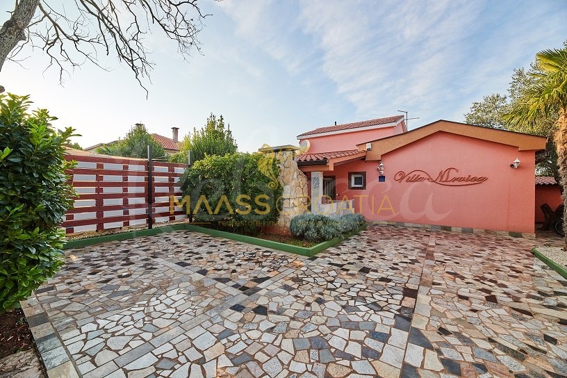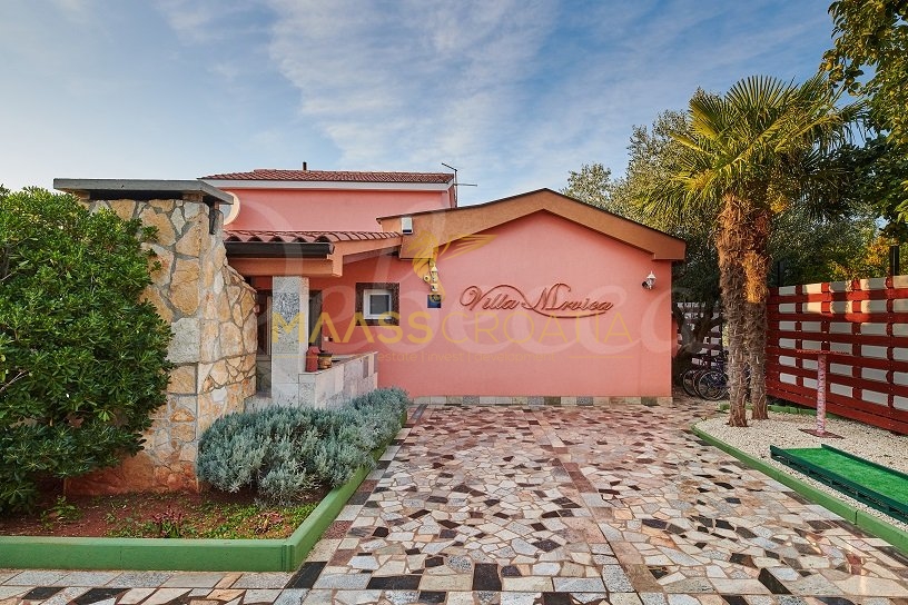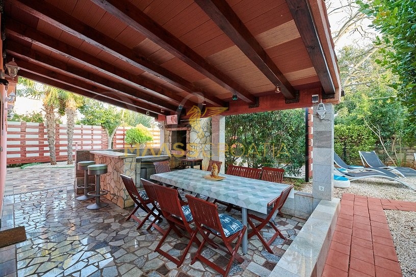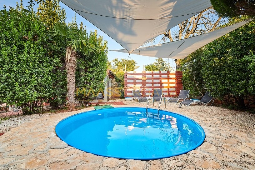 Вилла окружена участком площадью около 700 м², на котором есть бассейн, отдельное крытое и освещенное джакузи и дополнительные объекты для отдыха и релаксации, такие как мини-гольф и бассейн для ног, все в окружении красивых средиземноморских растений (оливки, инжир, вишня, лавр и т.д.).