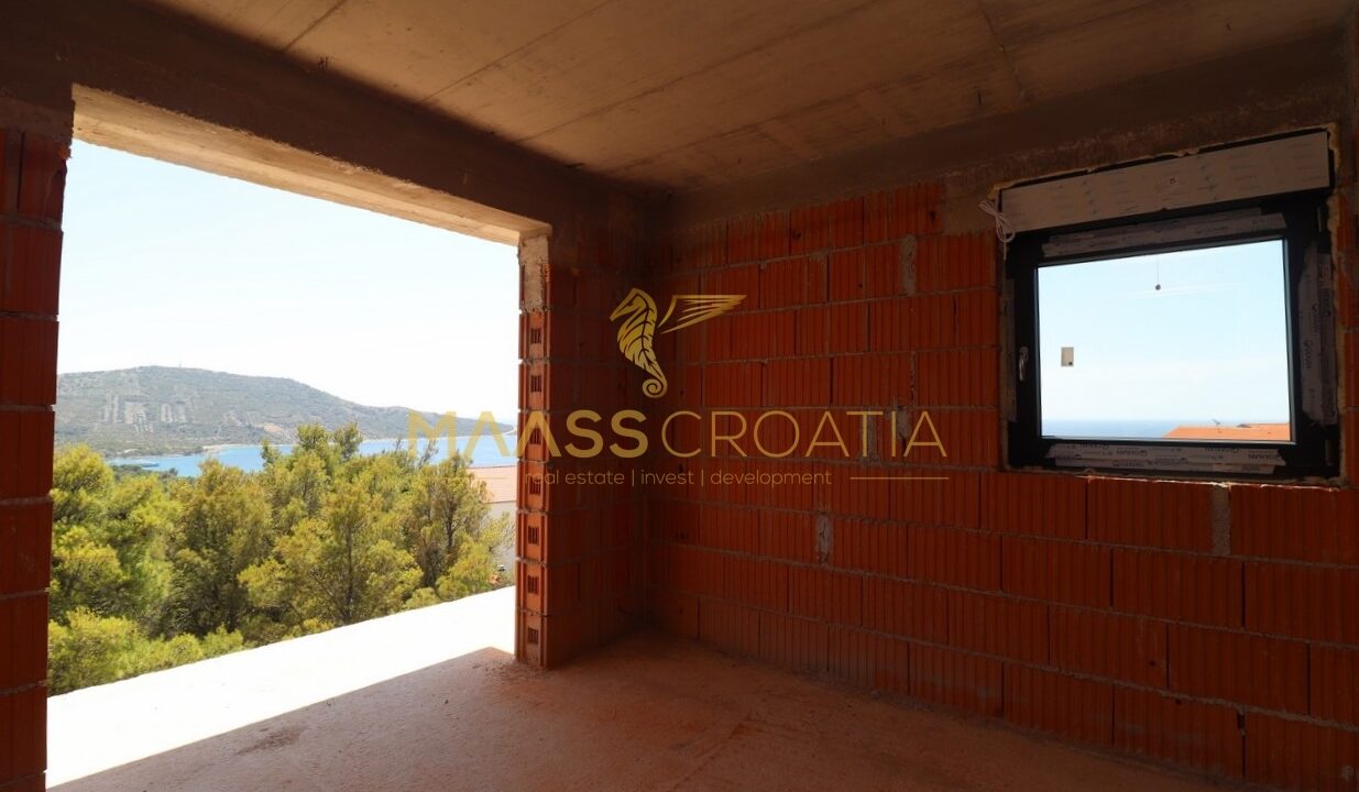 Две недавно построенные квартиры на первом этаже с большим садом в первом ряду от моря недалеко от Шибеника