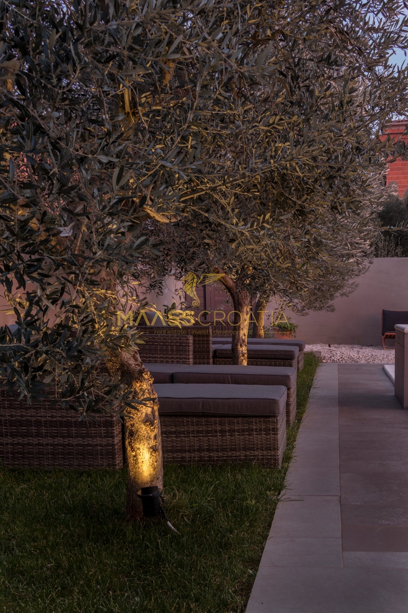 В саду площадью 300 м², за которым с любовью ухаживают, есть бассейн с зоной для принятия солнечных ванн, летняя кухня и несколько оливковых деревьев, придающих дому средиземноморский колорит.