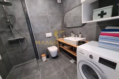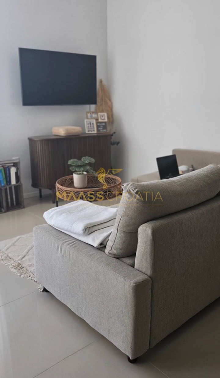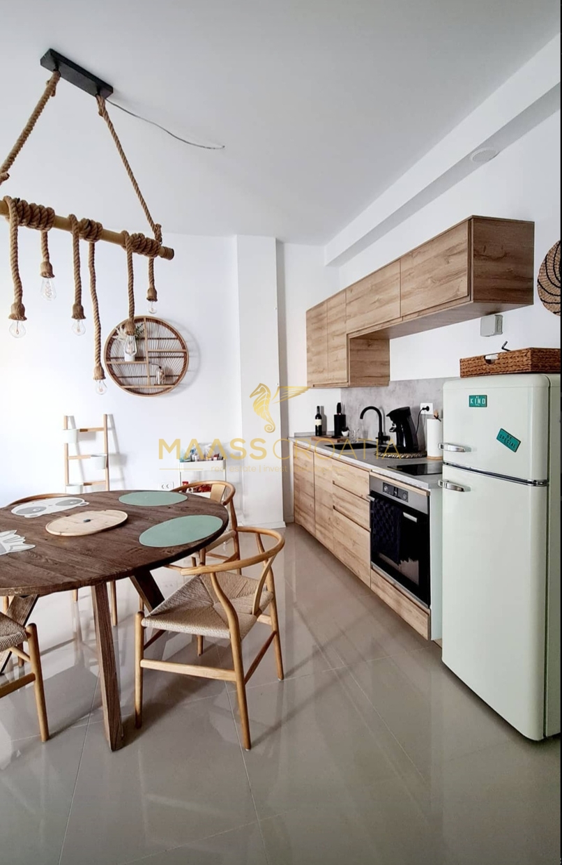 Квартира предлагает почти 70 м² полезной площади, разделенной на гостиную, кухню открытого плана, одну спальню, ванную комнату и балкон.
