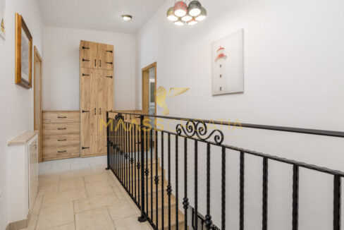 Элегантная внутренняя лестница ведет на второй этаж, где находятся еще две спальни, каждая с ванной комнатой и выходом на террасу, откуда открывается прекрасный вид на море.