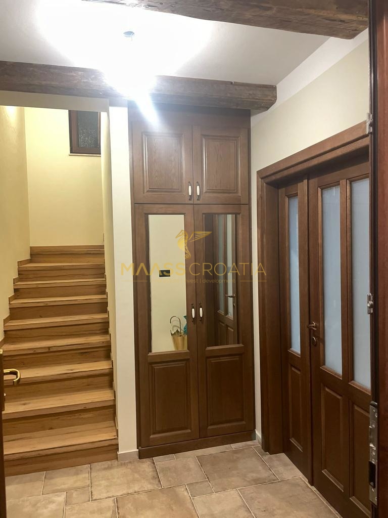 При строительстве и отделке были использованы материалы высочайшего качества, в том числе массив славонского дуба, из которого была изготовлена мебель по индивидуальному заказу.
