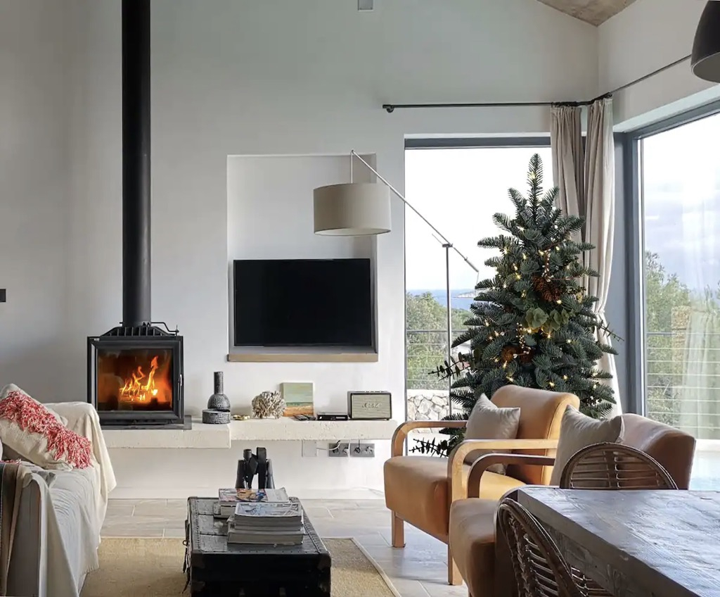 Оформленная полностью в белом цвете с каменными деталями, которые дополняют синее море на заднем плане, эта двухэтажная вилла с шестью спальнями имеет общую площадь 180 м2 и располагается на участке площадью 404 м2.