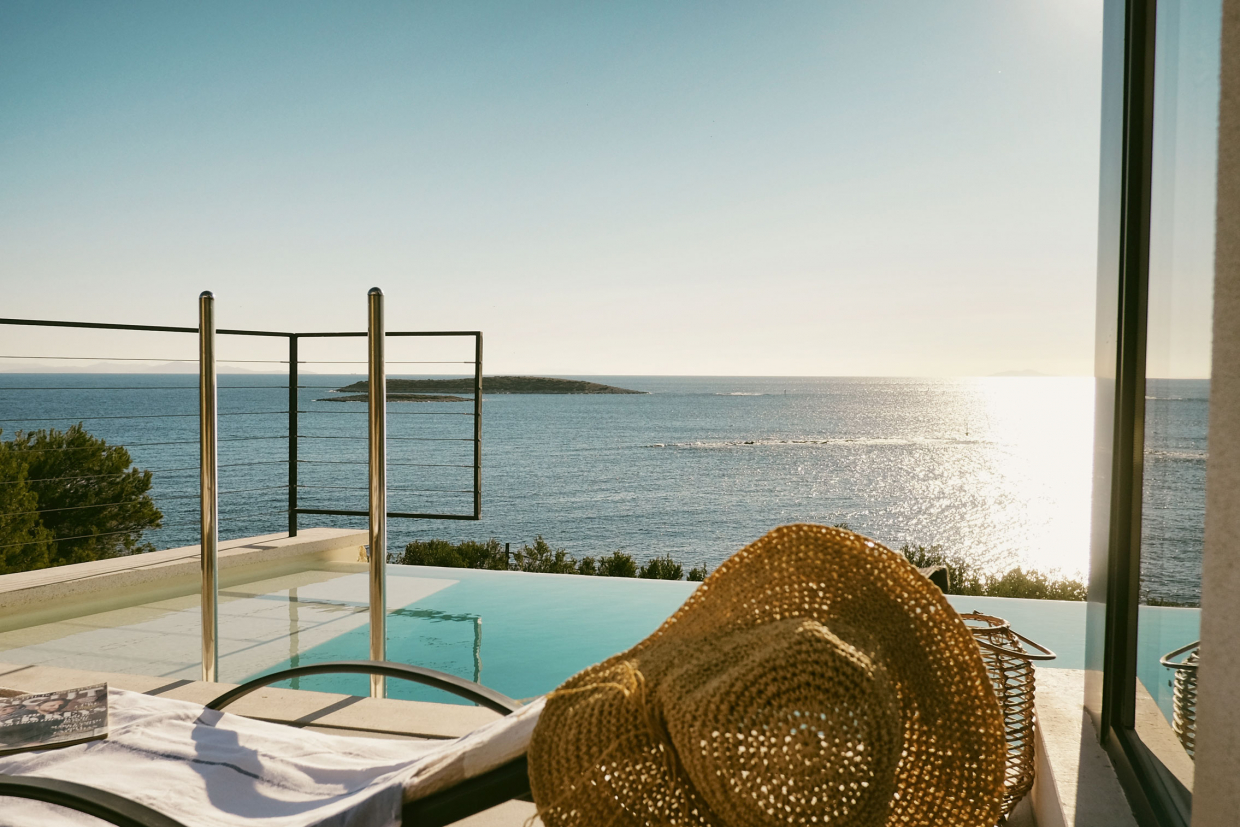 Сочетание камня и белого бетона создает экзотическую атмосферу и отражает дух этого очаровательного острова Вис.