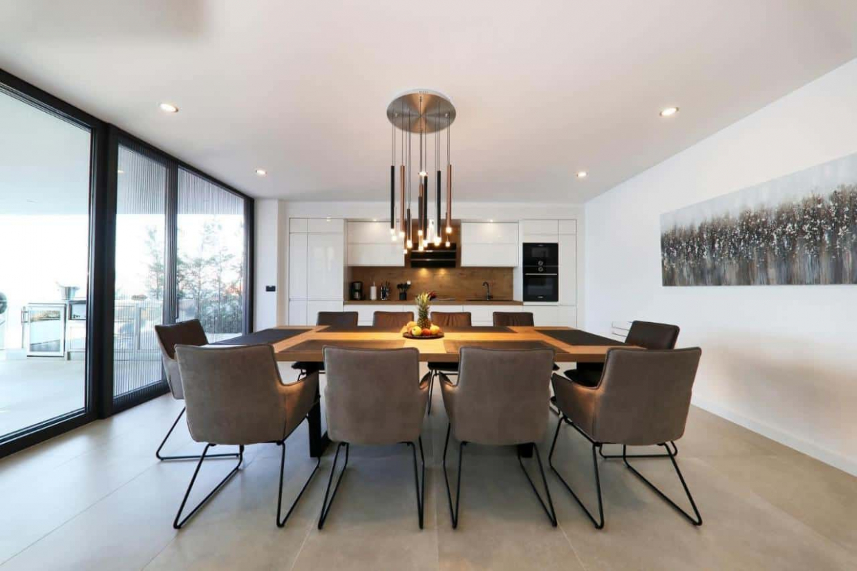В тихом месте, на вилле с современным дизайном и архитектурой с...