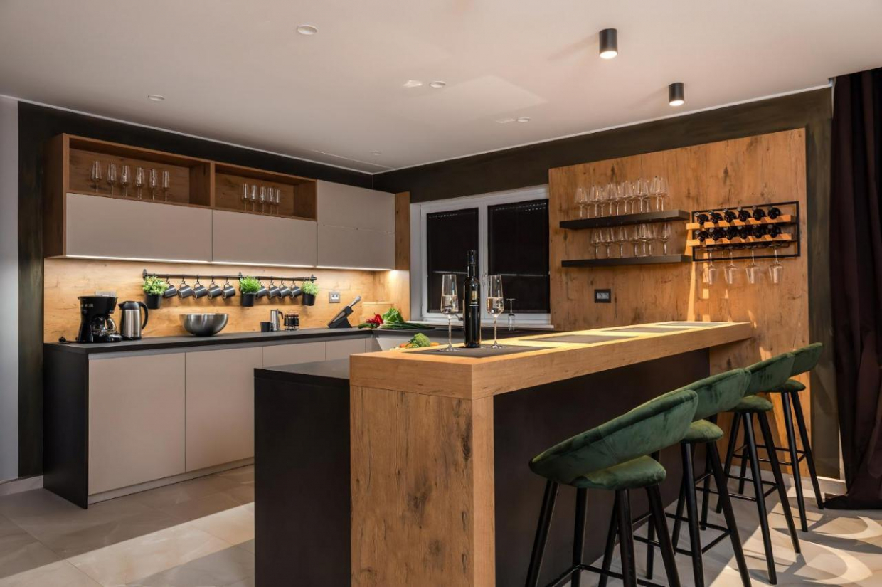Красивая открытая кухня на великолепной террасе с видом на долину идеально подходит для всех летних встреч, так как здесь вы можете расслабиться и насладиться природой и самыми захватывающими видами, которые когда-либо видели эти места!