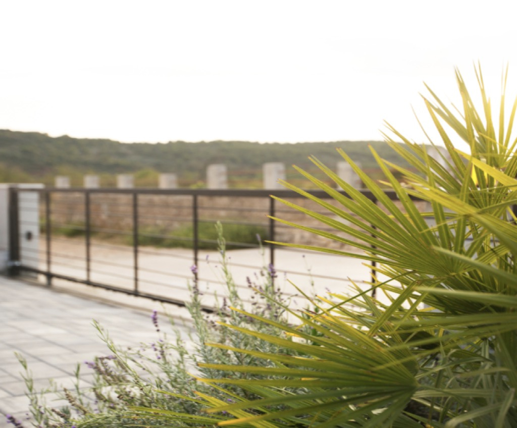 Она стратегически отделена от бассейна и остальной части открытой площадки небольшой частью растительного материала, чтобы обеспечить приватность и создать зону для развлечений, отличную от главной террасы.