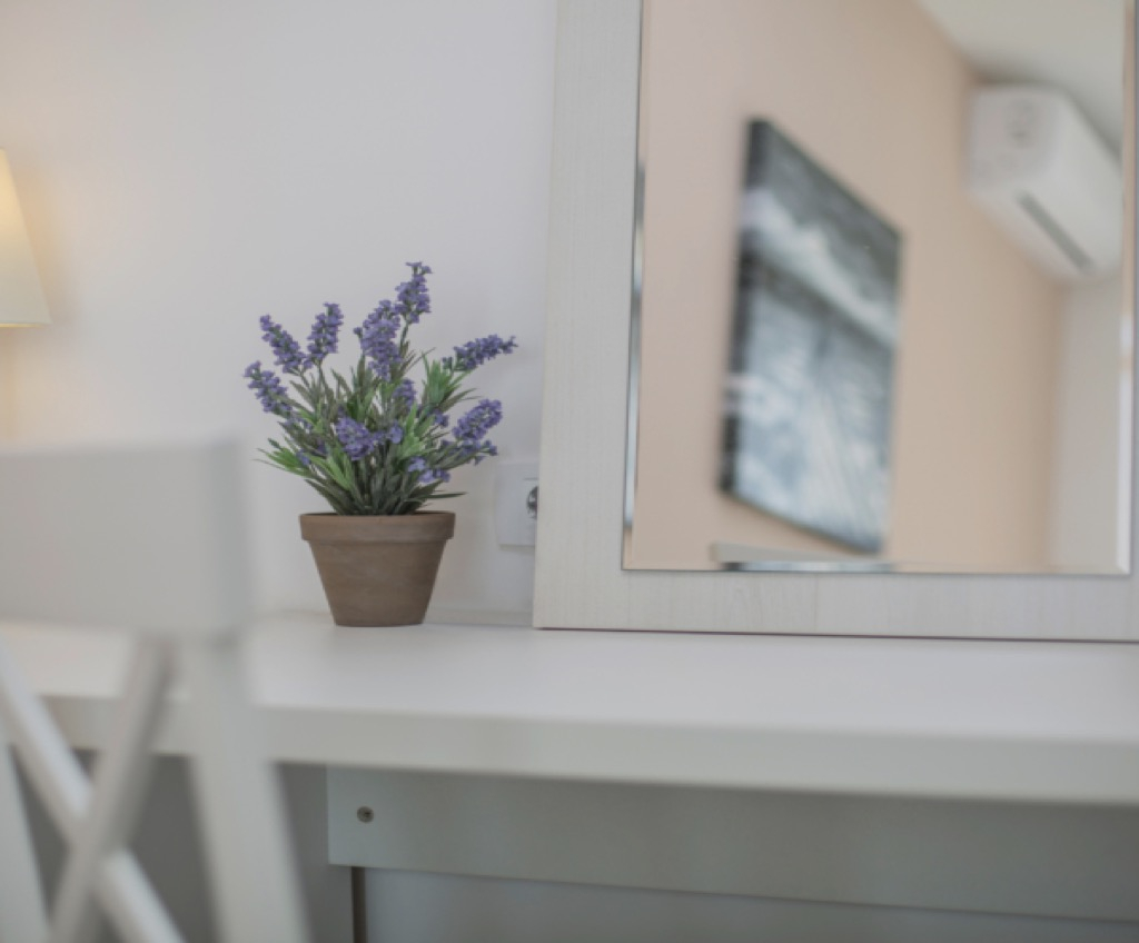 Высокие потолки, белые стены и деревянные полы, дополненные современной мебелью и техникой, включая кондиционеры, дадут вам больше, чем нужно.