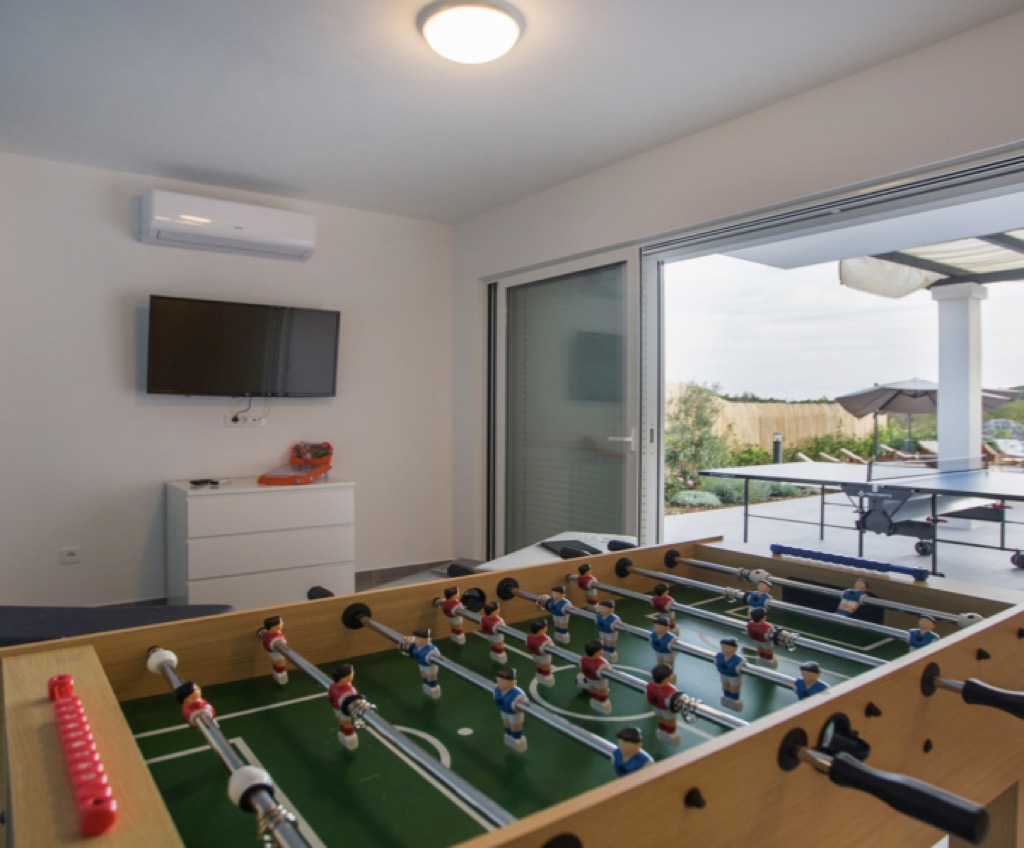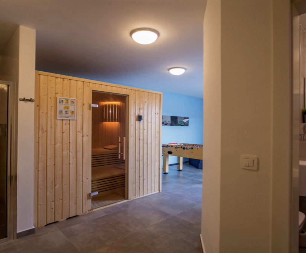 Здесь также есть игровая комната с бильярдным столом и сауна, которую также можно использовать.