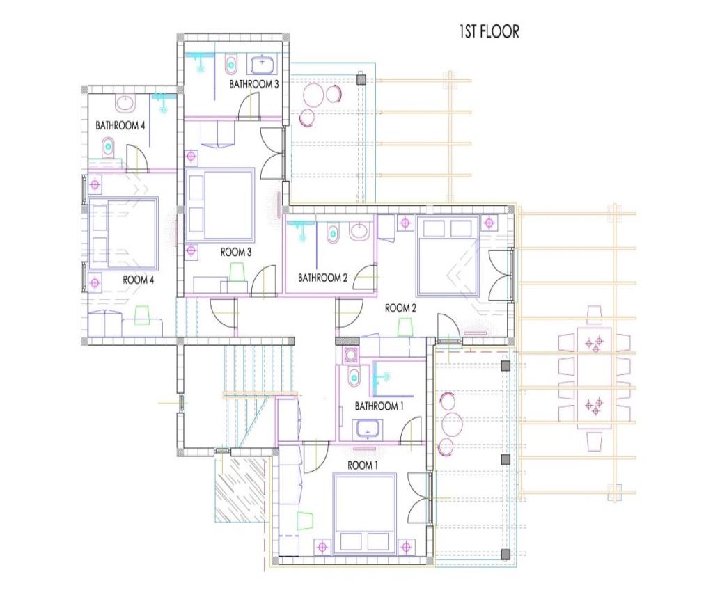 В полностью оборудованном и меблированном доме есть 4 ванные комнаты и 4 спальни.