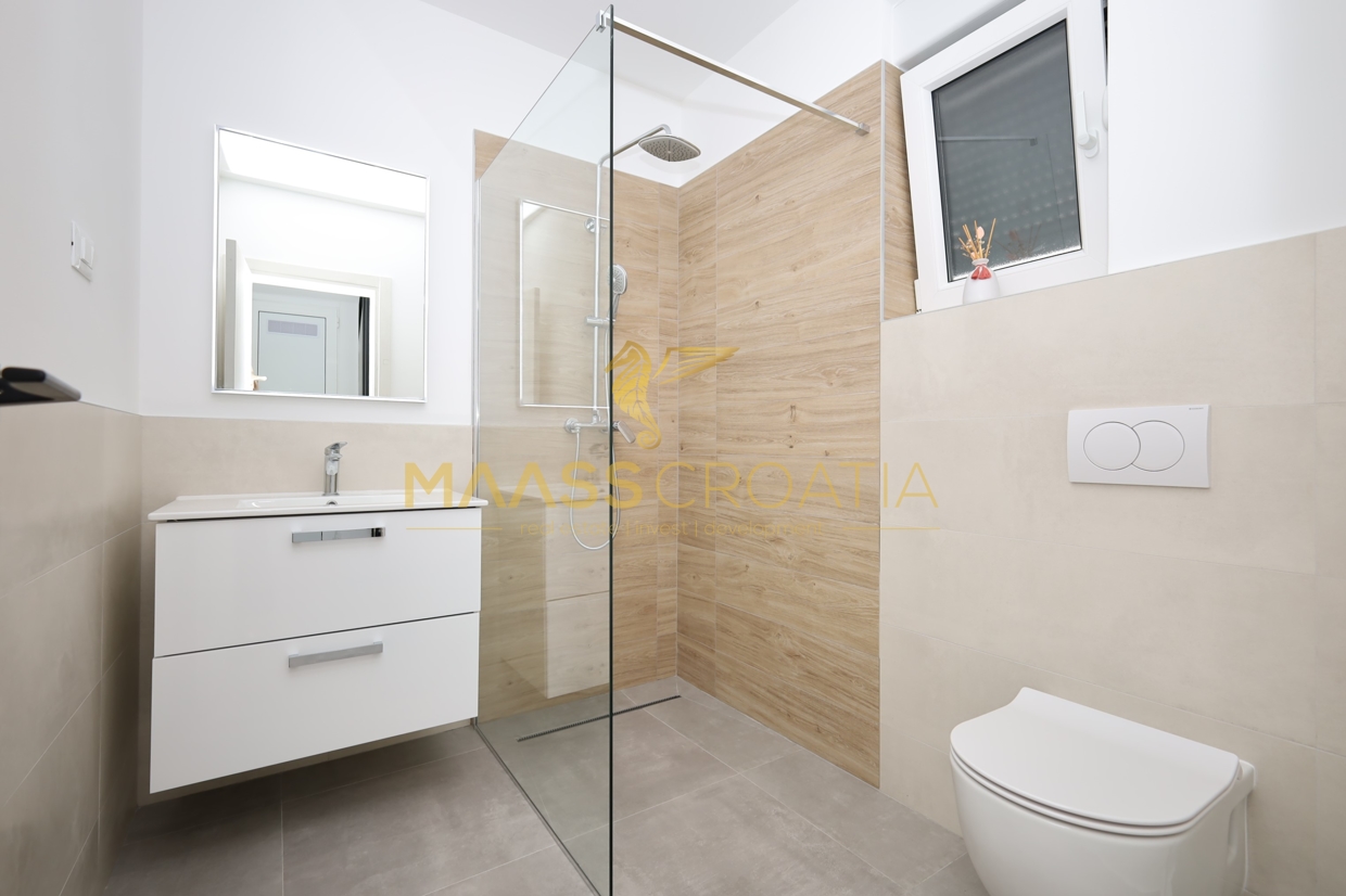 Один двухквартирный дом занимает три этажа: первый этаж, второй этаж и второй этаж / терраса на крыше, общая полезная площадь 96,14 м², сад 30 м² с большой террасой 15 м².