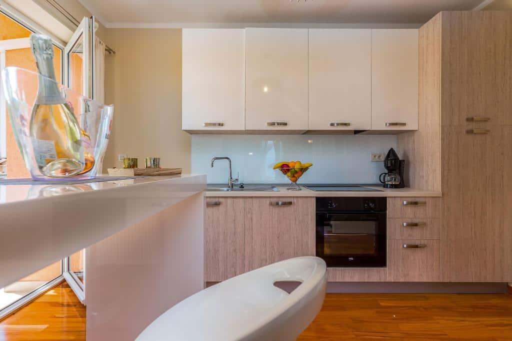 Имеется просторная парковка, ухоженный двор с бассейном и номера с видом на море.