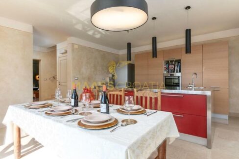 На площади 190 м2 расположены три спальни, все с ванными комнатами, гостиная, кухня-столовая и терраса, которая может быть полностью закрыта мобильной стеклянной стеной, таким образом, защищена от любых погодных условий и пригодна для использования.