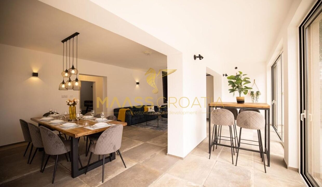 Продается исключительная вилла, построенная в 2021 году из высококачественных материалов и с тщательно подобранной мебелью, в отличном месте на острове Вир, в округе Задар, недалеко от города Нин.