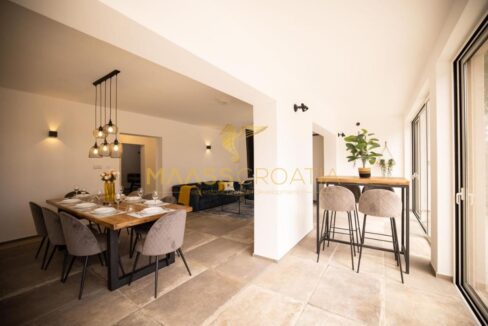 Вход на виллу ведет в уютную гостиную, кухню с обеденной зоной и зимний сад. Всего в этом впечатляющем особняке 5 спален, каждая из которых спроектирована так, чтобы обеспечить комфорт и функциональность для жильцов. В доме 5 ванных комнат, что обеспечивает каждому жильцу достаточно места и уединения для личной гигиены.