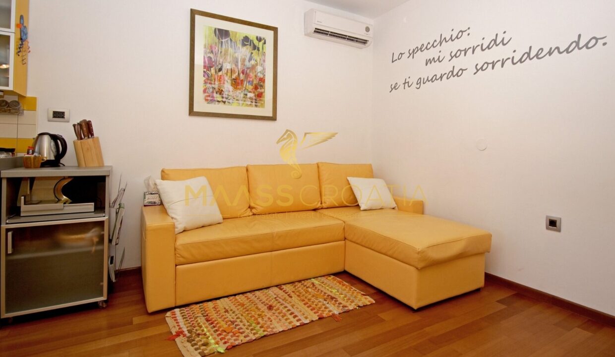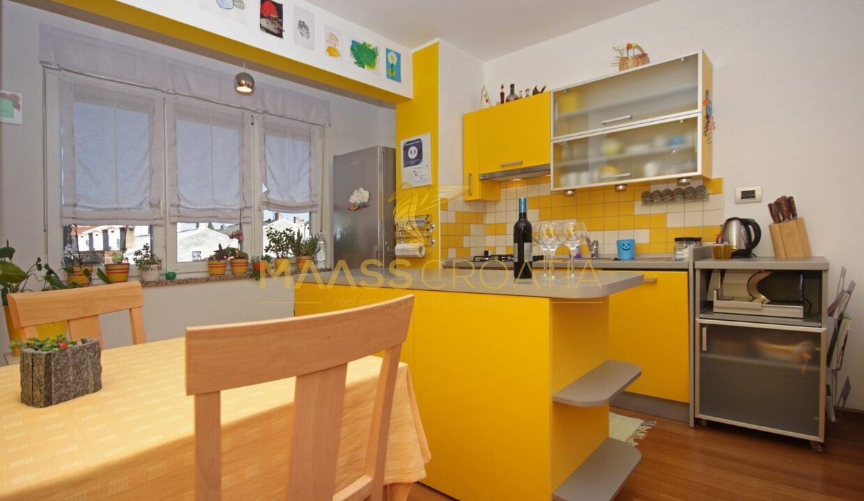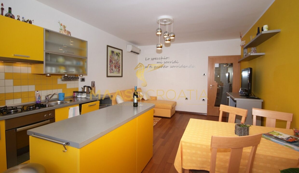 Эта светлая и хорошо спроектированная квартира площадью 62 кв. м расположена на втором этаже ухоженного жилого дома в Пуле, всего в двух километрах от моря.