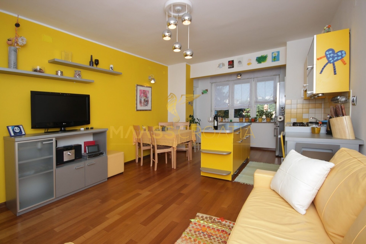 Эта светлая и хорошо спроектированная квартира площадью 62 кв. м расположена на втором этаже ухоженного жилого дома в Пуле, всего в двух километрах от моря.