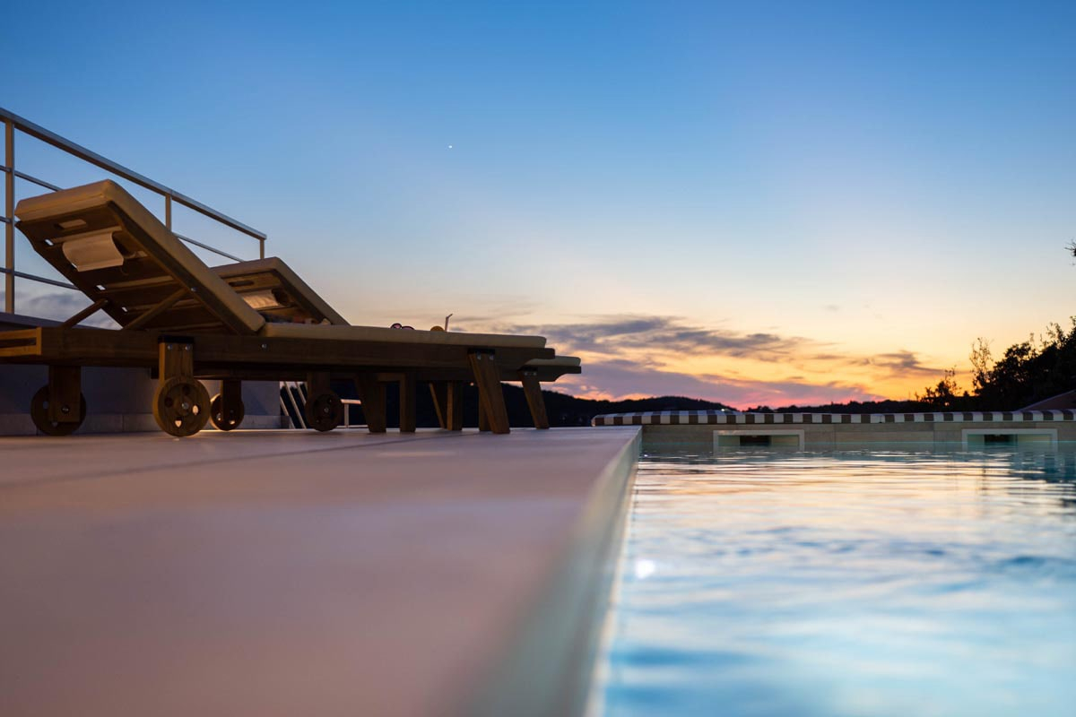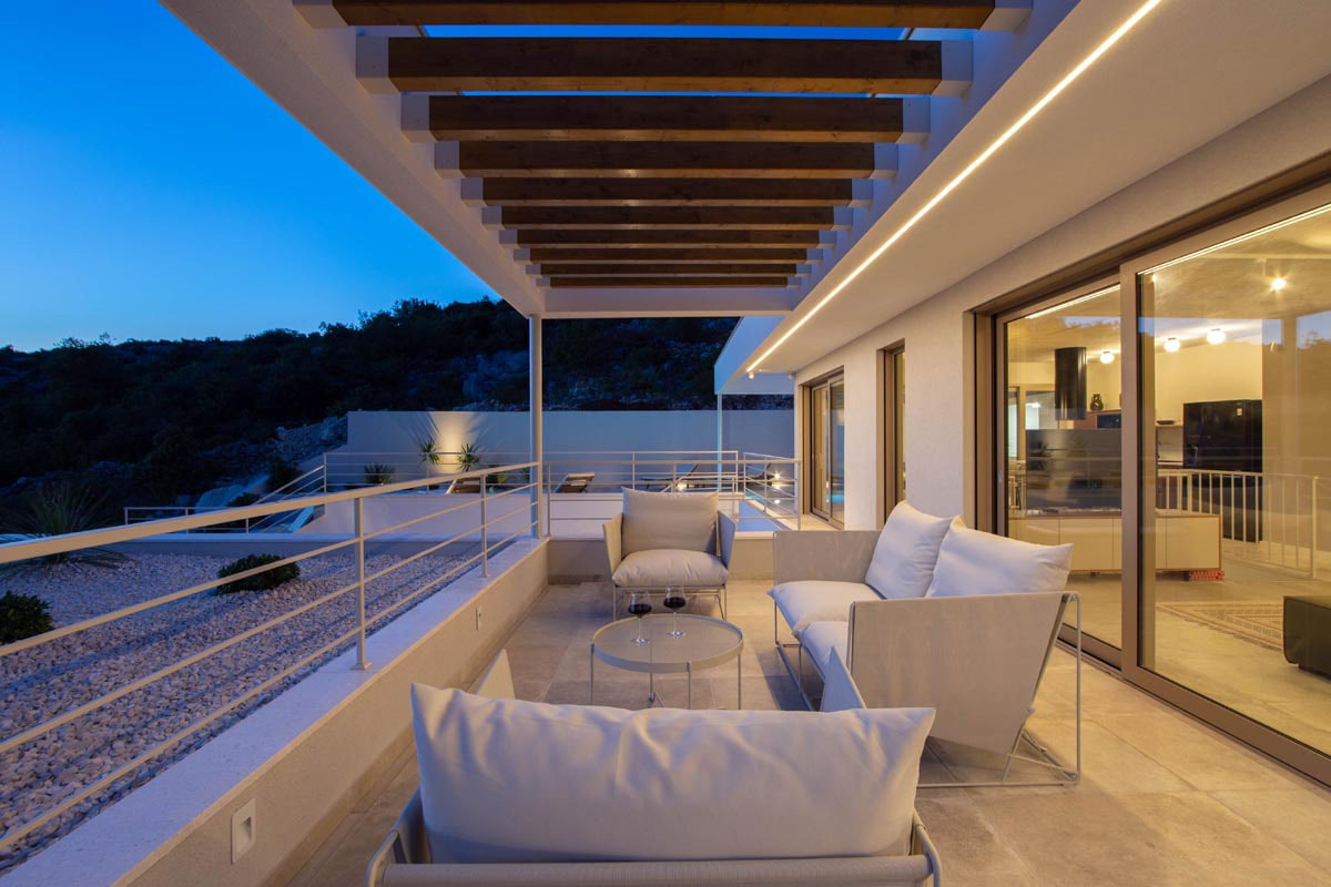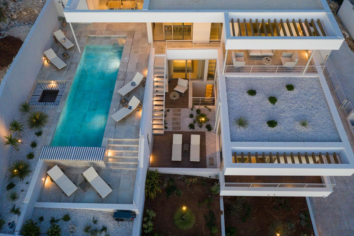 Концепция очень интересна и разнообразна, она создает внутреннюю динамику и делает это место максимально интерактивным. Благодаря чистому и минималистичному подходу интерьер дома способствует простоте и теплоте. Дом включает в себя просторный гараж, а также встроенную сауну, джакузи и тренажерный зал. Самой центральной частью дома, безусловно, станет большой бассейн на главной открытой террасе, который будет использоваться для развлечений.