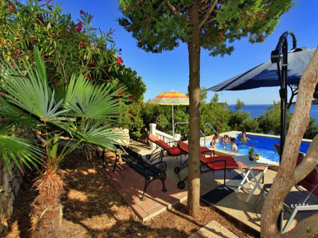 На открытой террасе расположен большой бассейн, а за ним – просторный стол и зона отдыха, идеальная для общения и развлечений. На вилле также есть красочный маленький сад, который оживляет все вокруг.