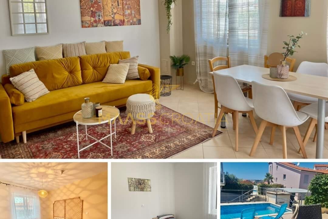 Квартиры меблированы, каждая имеет место для парковки автомобиля и находится примерно в 100 м от моря.