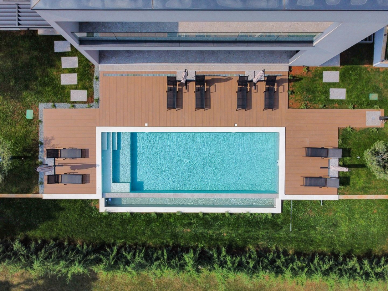 Снаружи вы найдете бассейн площадью 35 м2, где можно охладиться в жаркие летние дни.