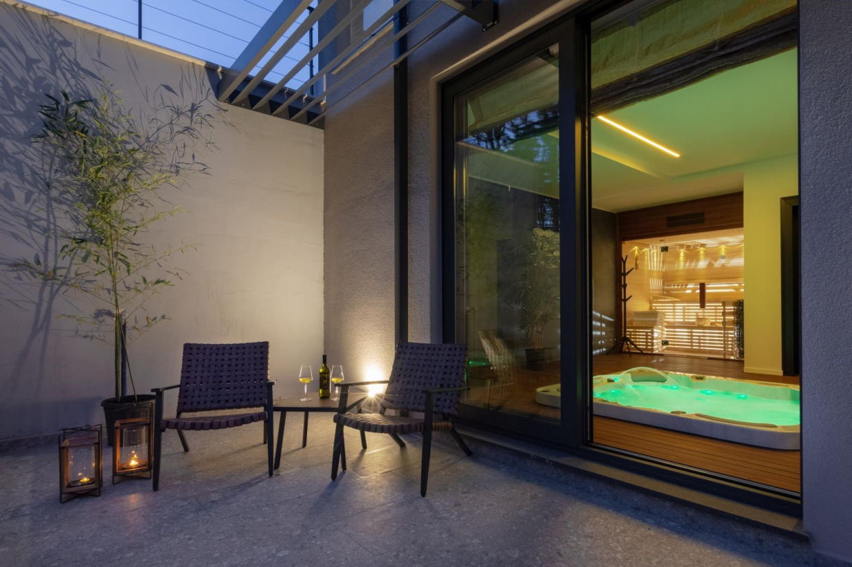На обширном участке площадью 1500 м2 есть много места для активного отдыха: вы можете расслабиться в саду, насладиться трапезой на террасе или расслабиться в сауне или гидромассажной ванне.