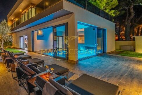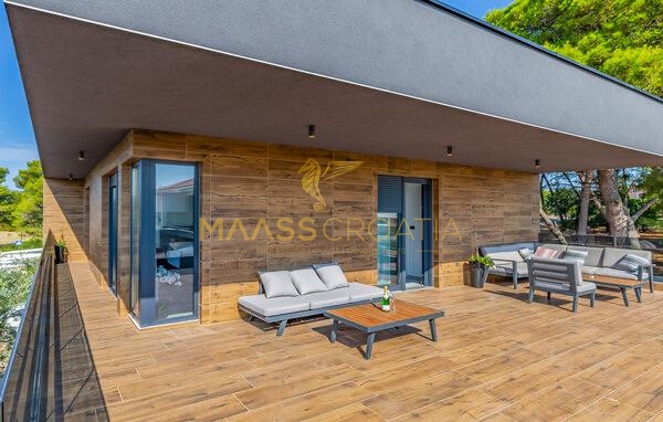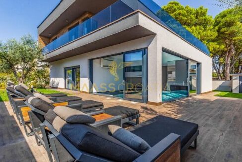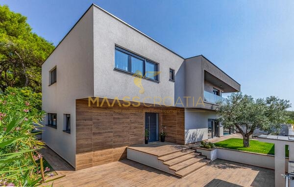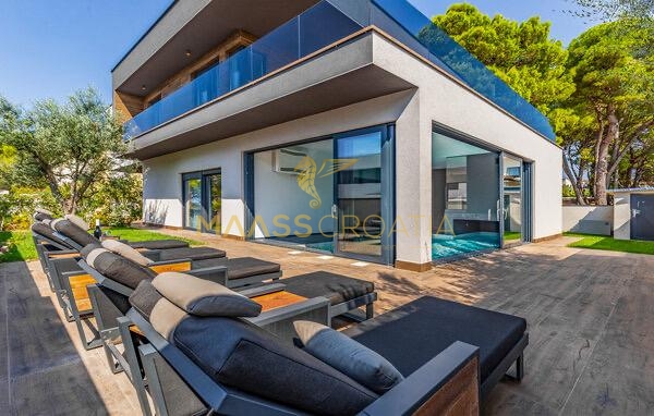 Продается современная вилла с бассейном, всего в 200 метрах от пляжа. Вилла имеет 285 м² жилой площади и расположена на участке 480 м² в окружении сосен.