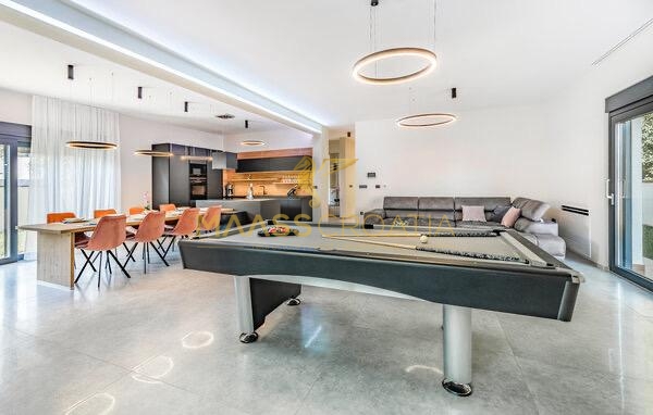 Роскошная вилла была построена и оборудована по самым высоким стандартам – полы с подогревом, тепловые насосы, термофасад, солнечные батареи, керамическая плитка, мебель и бытовая техника. Строительство находится на завершающей стадии.