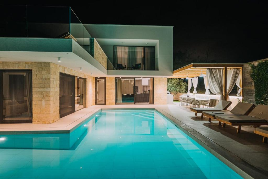Эта вилла находится недалеко от Задара, в небольшой деревне, в почти уединенном месте, всего в 1000 метрах от моря.