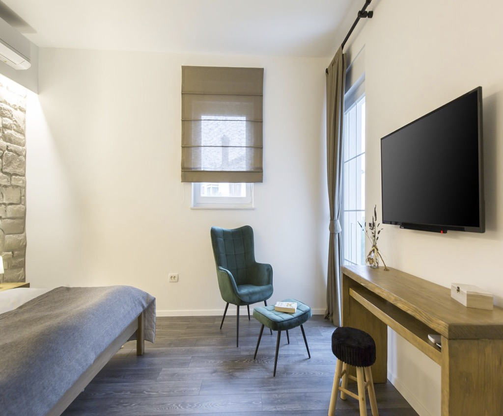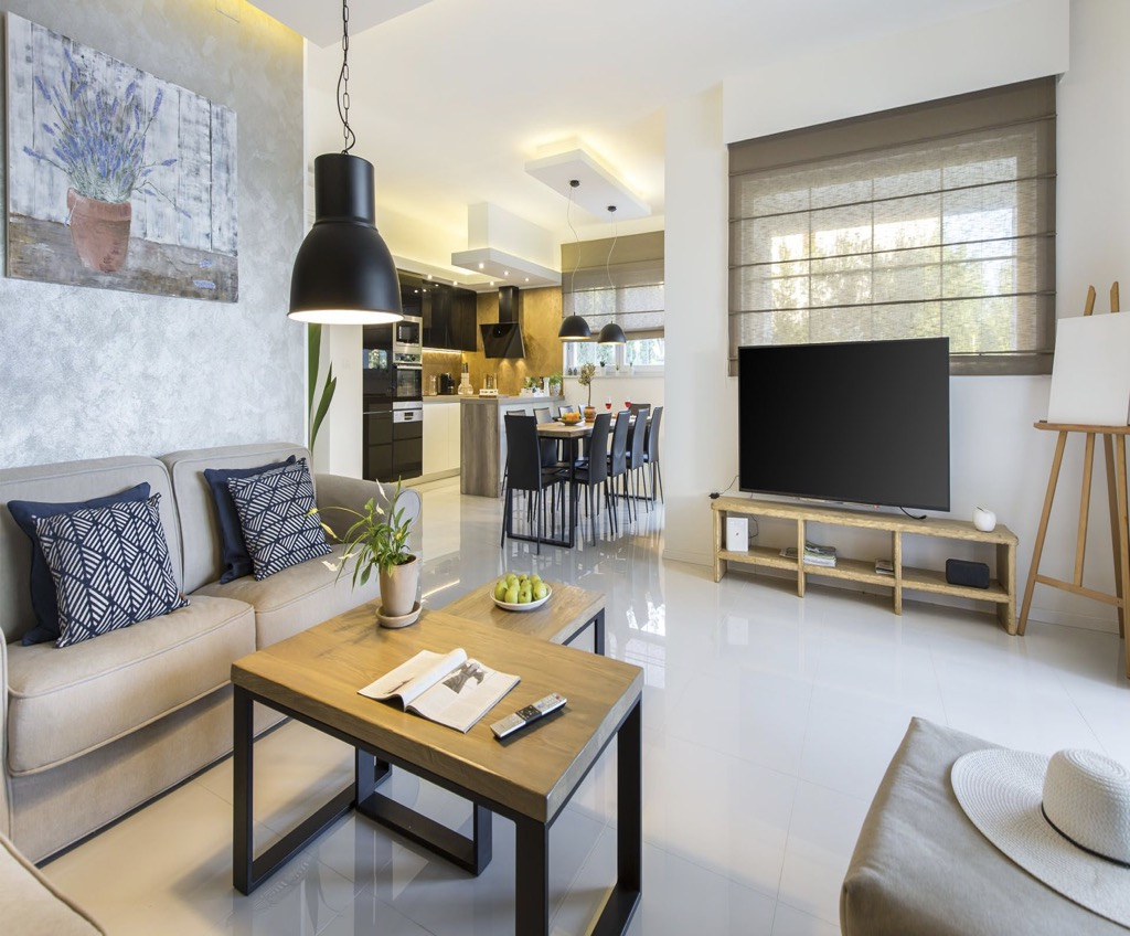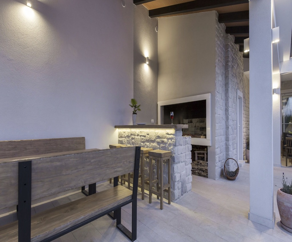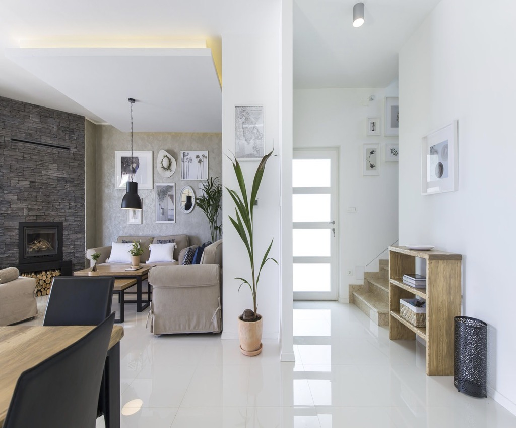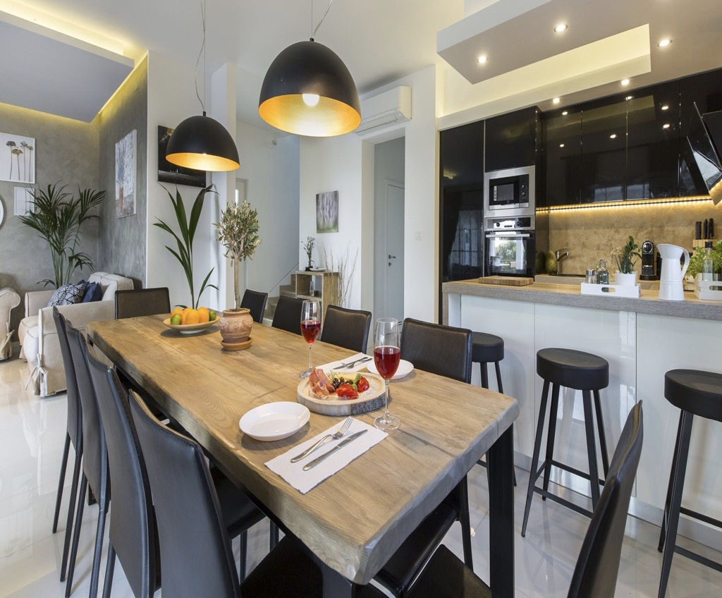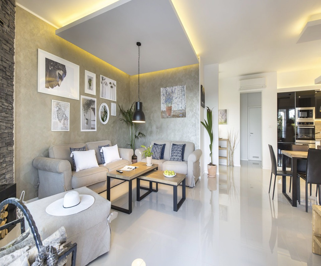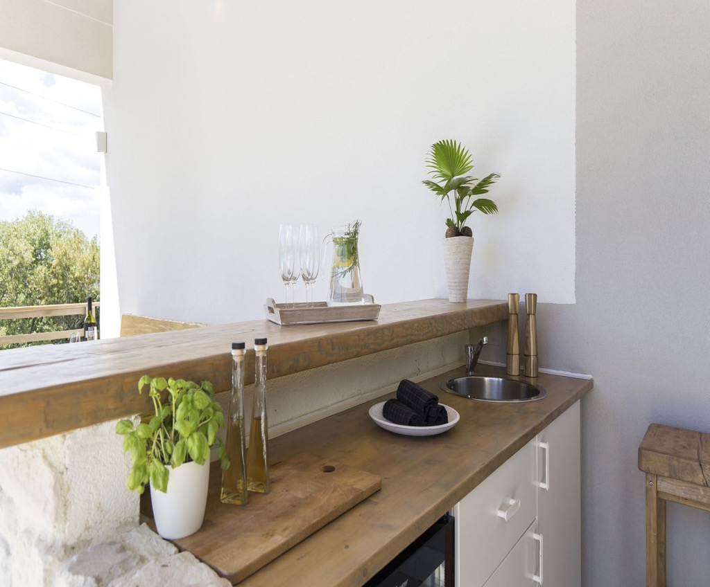 Дизайн интерьера прост и минималистичен, но оформлен с использованием натуральных материалов, таких как камень и твердые породы дерева, что придает дому правильный средиземноморский характер.