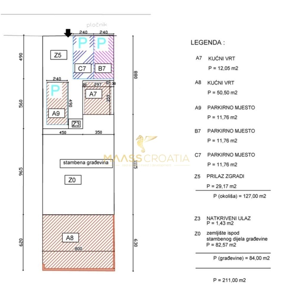Жилая площадь 137 м² в центре Умага. На первом этаже находится...