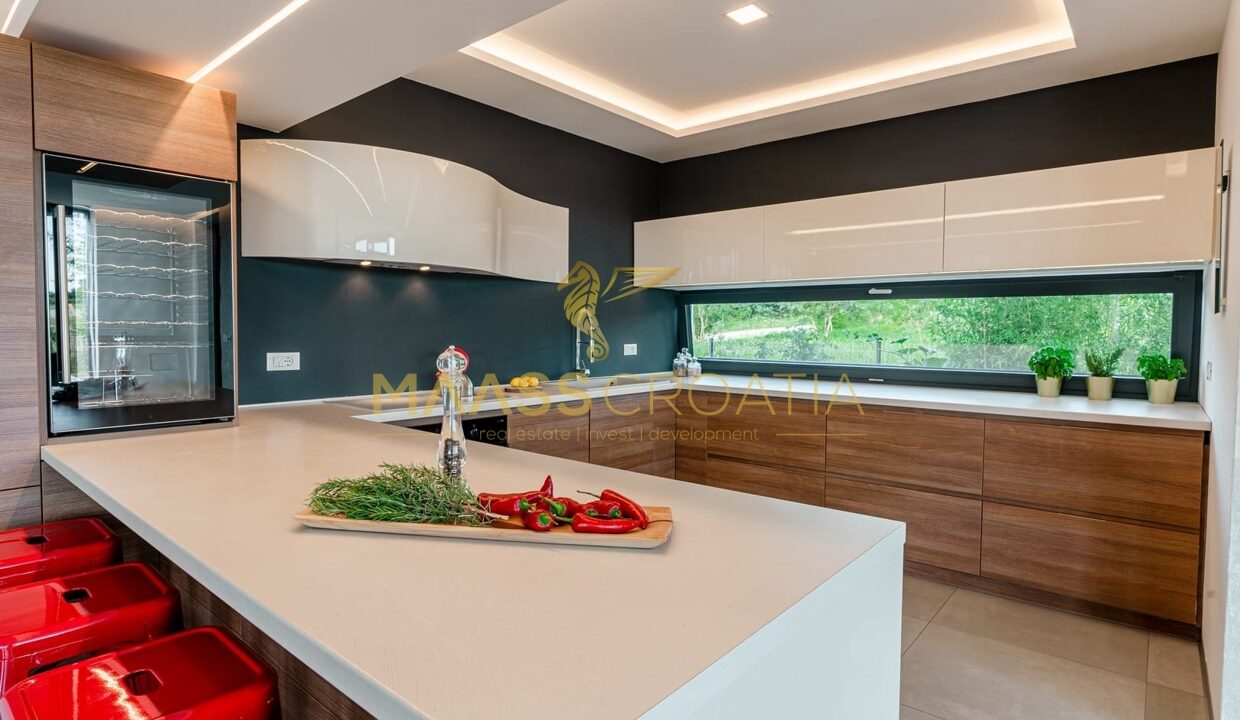 Вилла с жилой площадью 370 м2 расположена на 3 этажах: цокольный, первый и цокольный этаж.