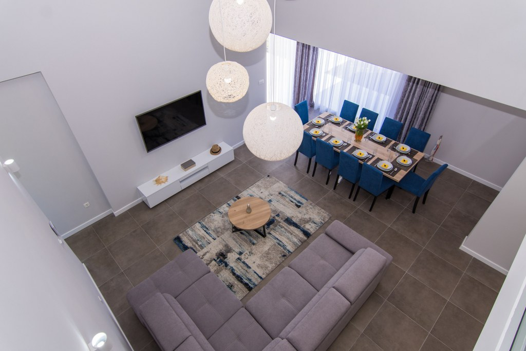 Просторный бассейн на террасе первого этажа – это, пожалуй, главная изюминка дома, идеальное место для общения с друзьями и семьей. В дополнение к прекрасно оформленной террасе, гармонично сочетающей крытую и открытую зоны, эта обеденная зона предлагает идеальное сочетание отдыха, панорамных видов, кулинарных изысков и уютных часов в кругу семьи и друзей. В глубине сада, в небольшом садовом уголке, стоит каменное барбекю, приглашающее вас отдохнуть. Минималистичный дизайн сада не оставляет места для растений и животных, но, тем не менее, расставляет яркие акценты в простой и элегантной планировке. Пляж и центр города находятся в нескольких минутах ходьбы, а до исторического старого города Каштели вы доберетесь всего за несколько минут. Этот дом очаровывает своим сказочным расположением и очарует вас. Свежий воздух, чистая вода и красочный пейзаж создают гармоничную и расслабляющую атмосферу.