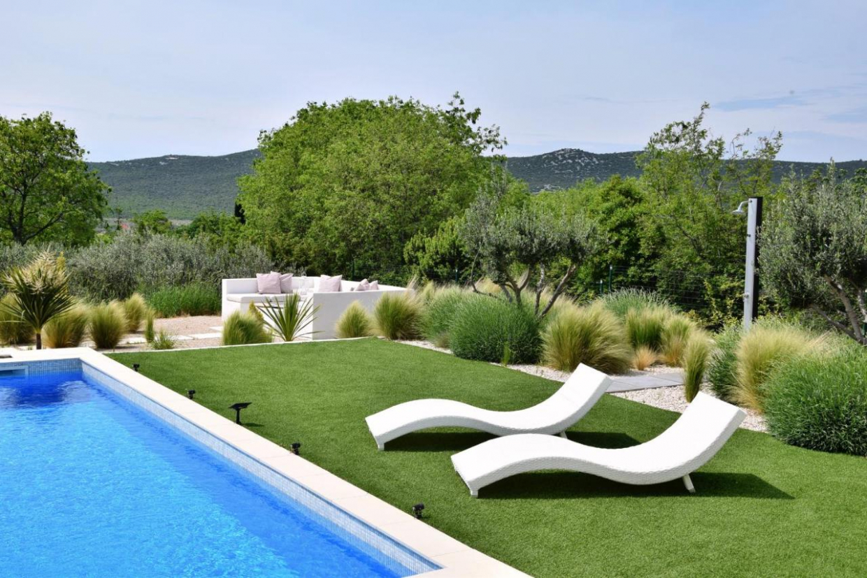 Современный дом в Медулине с видом на море, бассейном и летней кухней