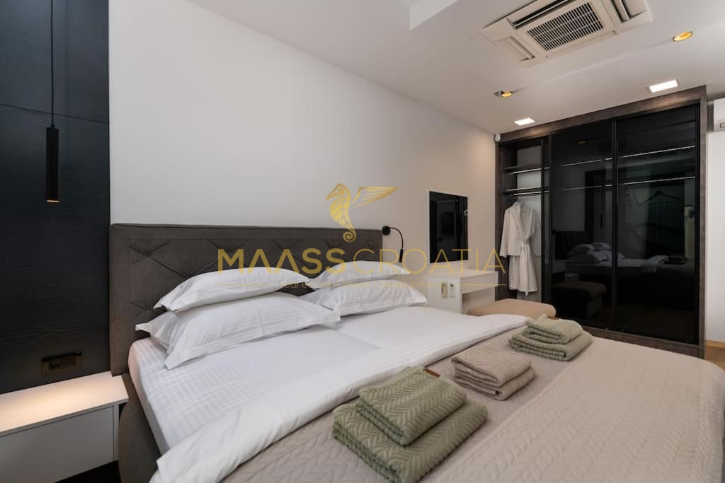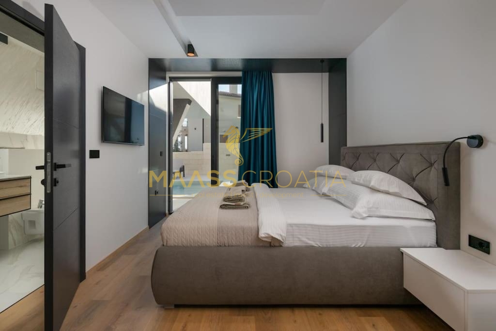 Эта красивая современная вилла расположена в отличном месте, всего в 2 км от центра города и в 300 м от моря и знаменитого пляжа Мукалба в Медулине.