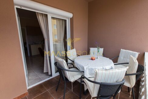 Она состоит из двух спален, кухни с гостиной, террасы и ванной комнаты.